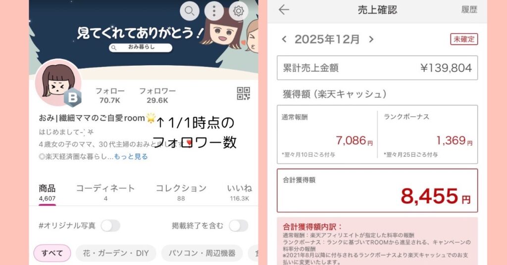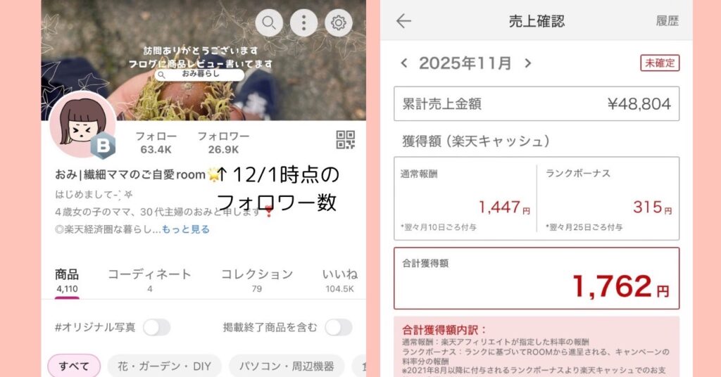 今回は、9・10月の停滞期を経たあとの 11月・12月の楽天ROOM収益レポをまとめました✎