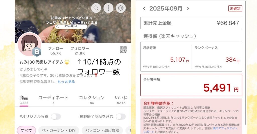 - 前回:楽天ROOM収益レポ|7・8月は「手数より質」へ転換。フォローバック率が10倍に伸びた理由と9–10月の検証計画