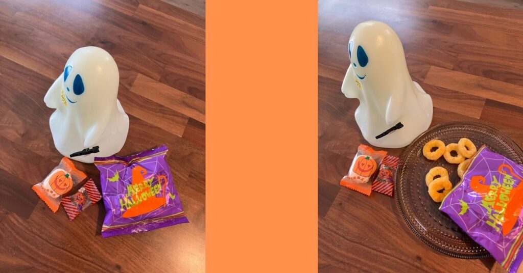 中には菓子3種入り!インテリアとして飾れる可愛いデザインで子どもも大喜び👻暗闇で光る素材✨️